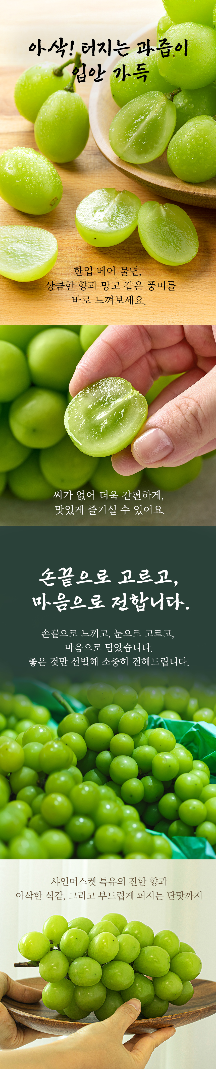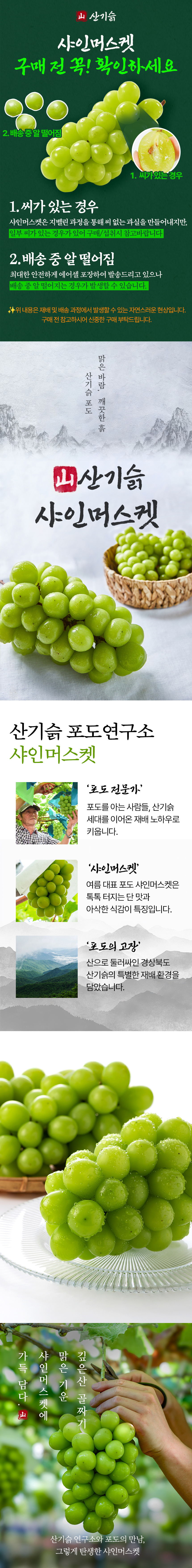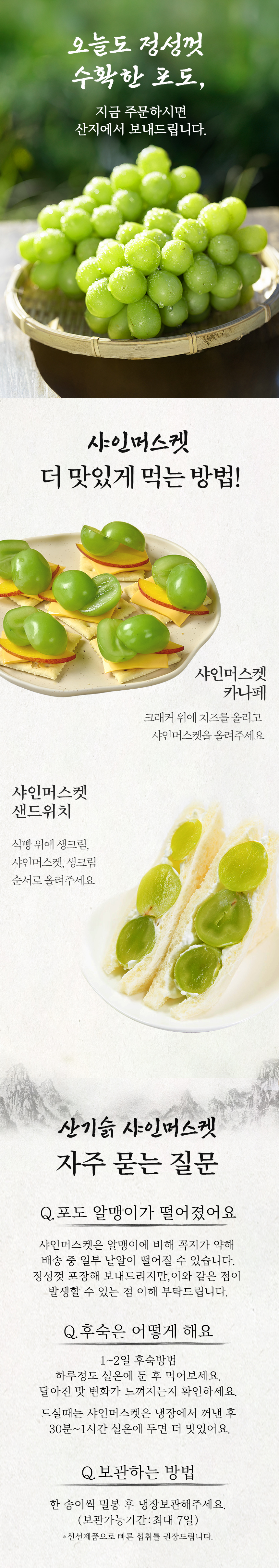 • 향부터 달콤한 고당도 산기슭 샤인머스켓 1kg (2-3수) (옵션다양) (무료배송)