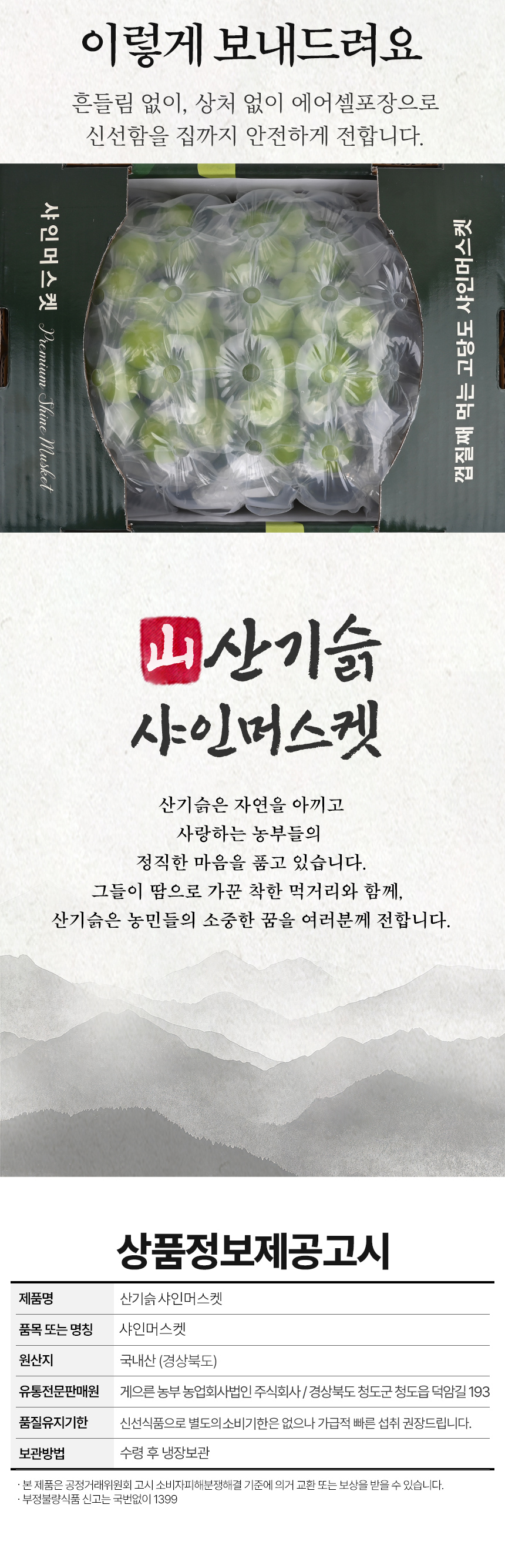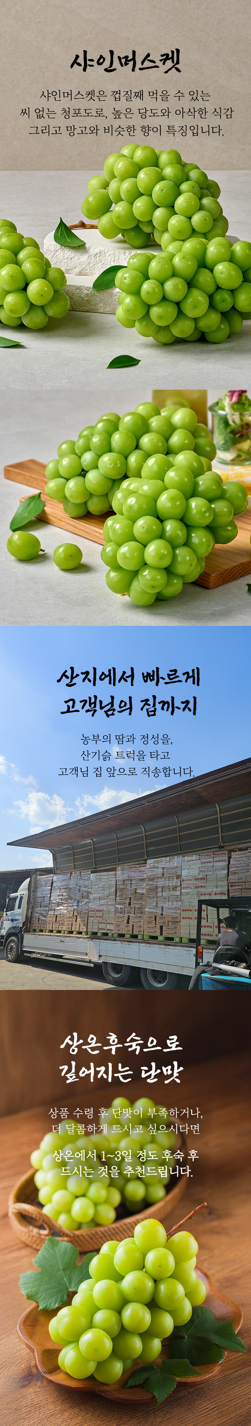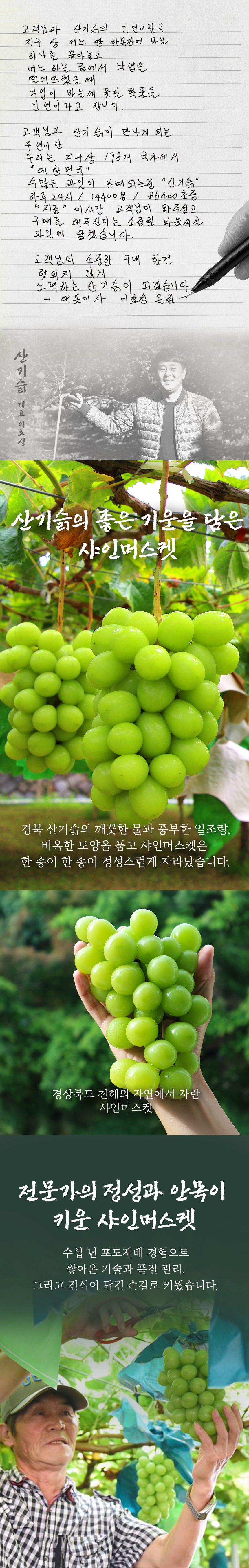 • 향부터 달콤한 고당도 산기슭 샤인머스켓 1kg (2-3수) (옵션다양) (무료배송)